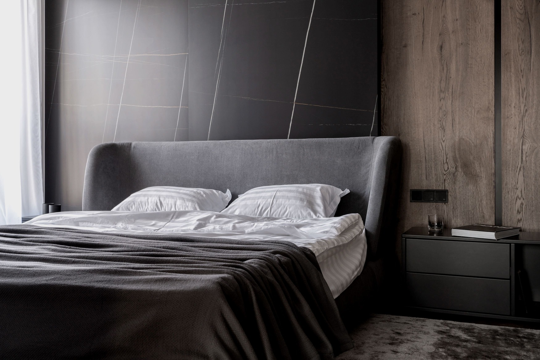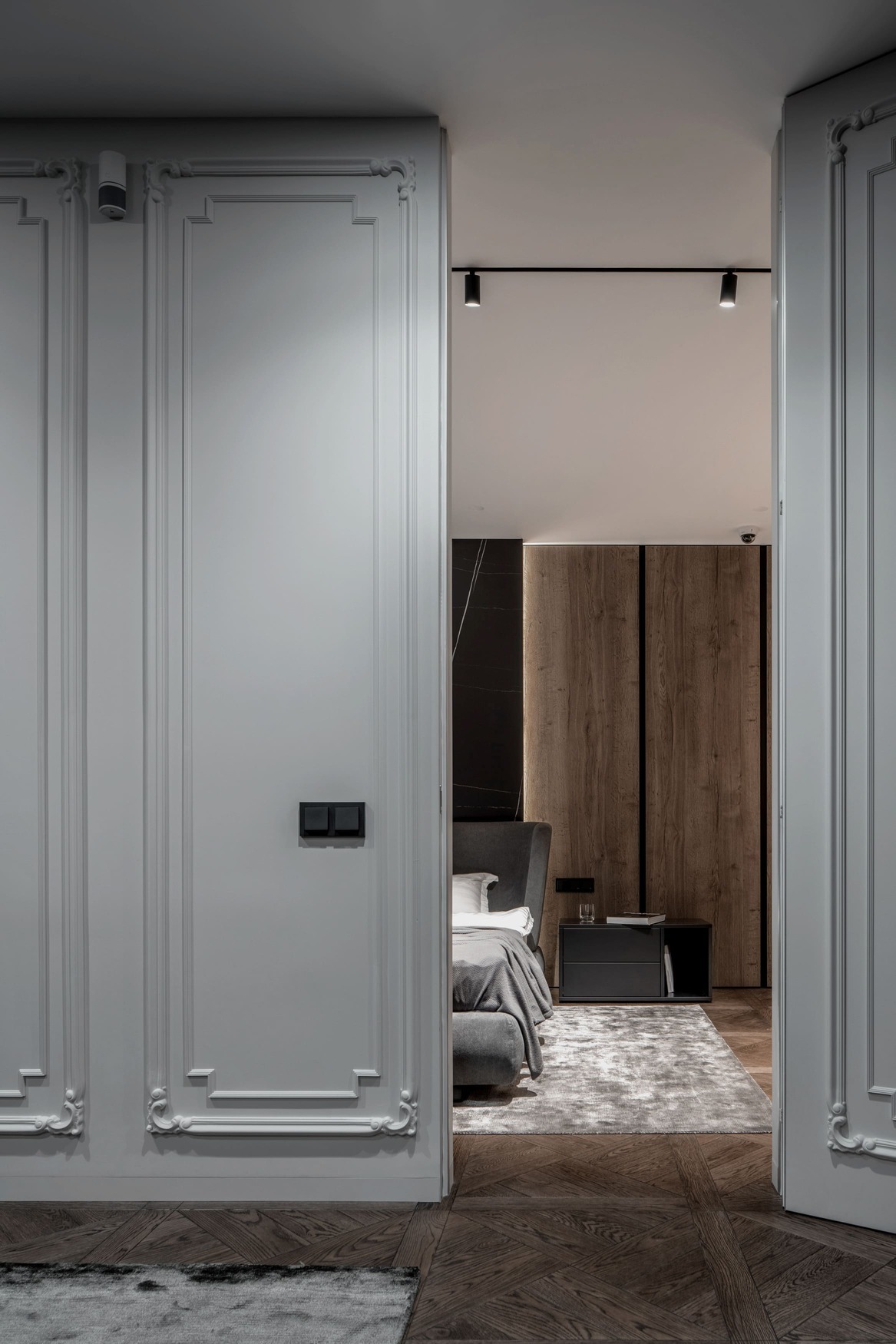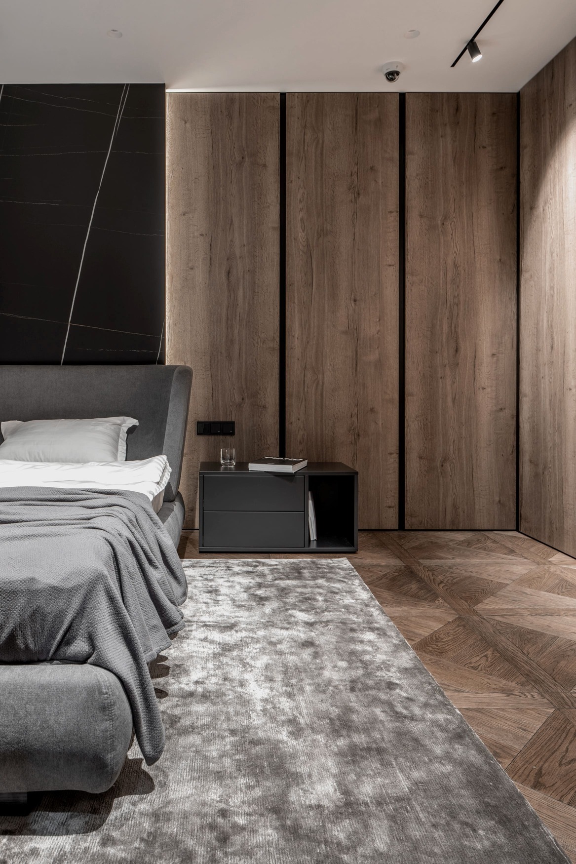 This interior balances warmth and minimalism with the use of natural wood, decorative plaster, and quartzite surfaces. Every line, surface, and light reflection was considered under full technical and author supervision, resulting in a truly harmonious and livable modern space.