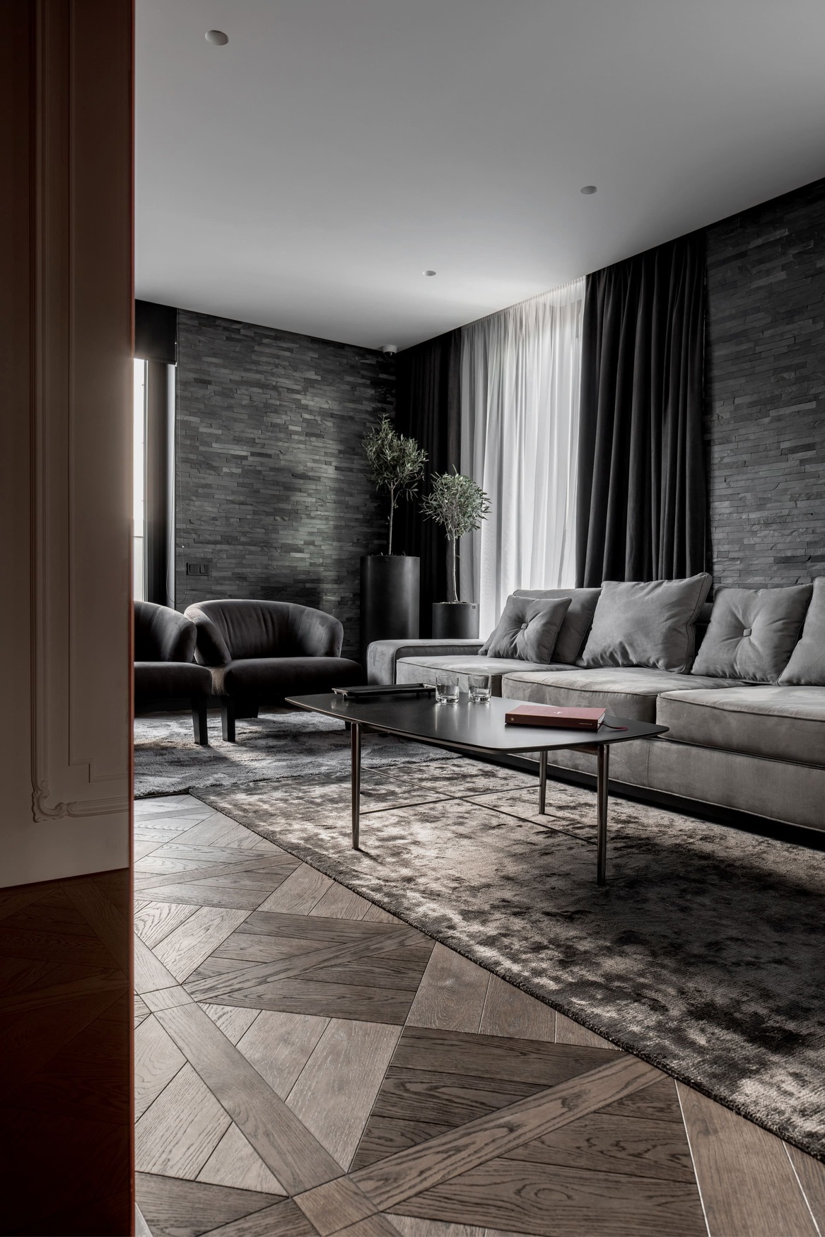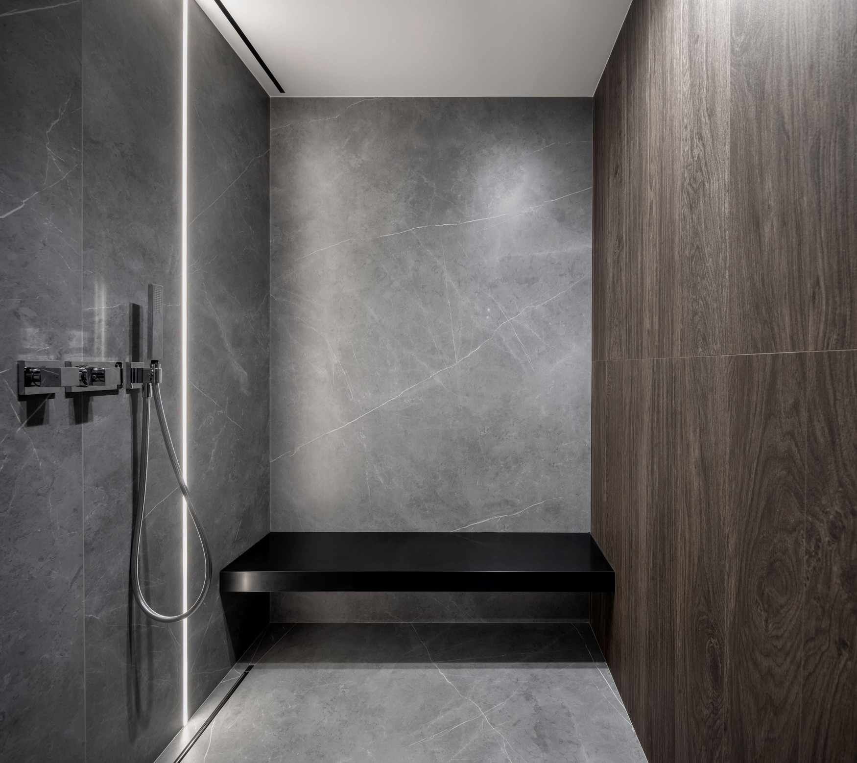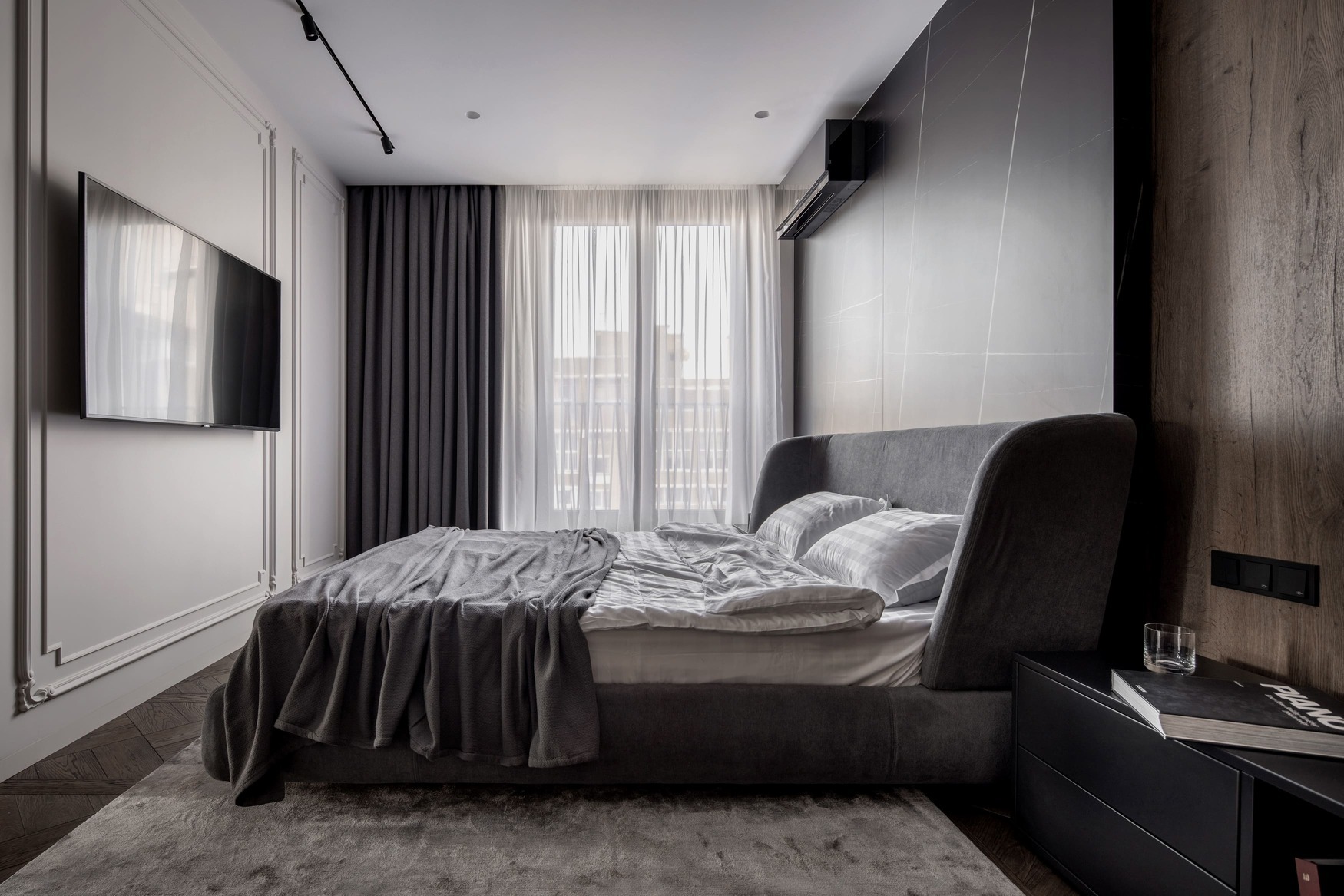 This interior balances warmth and minimalism with the use of natural wood, decorative plaster, and quartzite surfaces. Every line, surface, and light reflection was considered under full technical and author supervision, resulting in a truly harmonious and livable modern space.