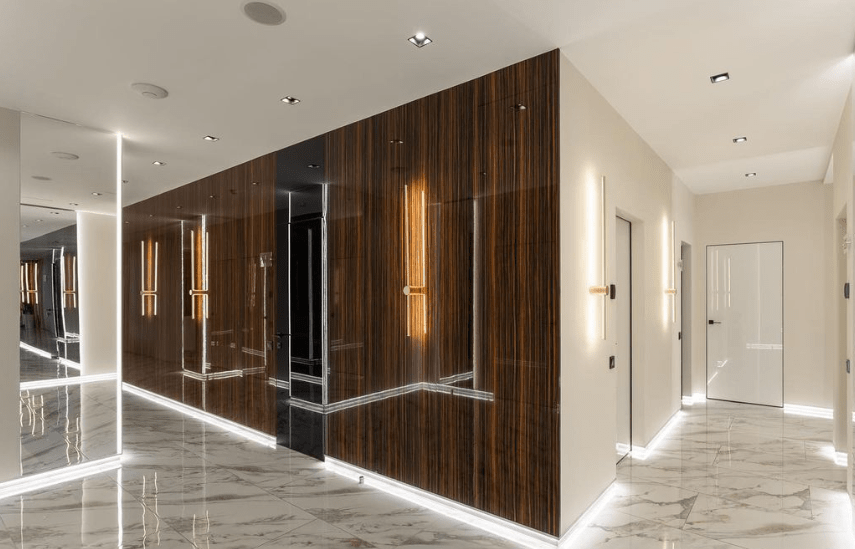 ▪️ Wood and glass wall panels
